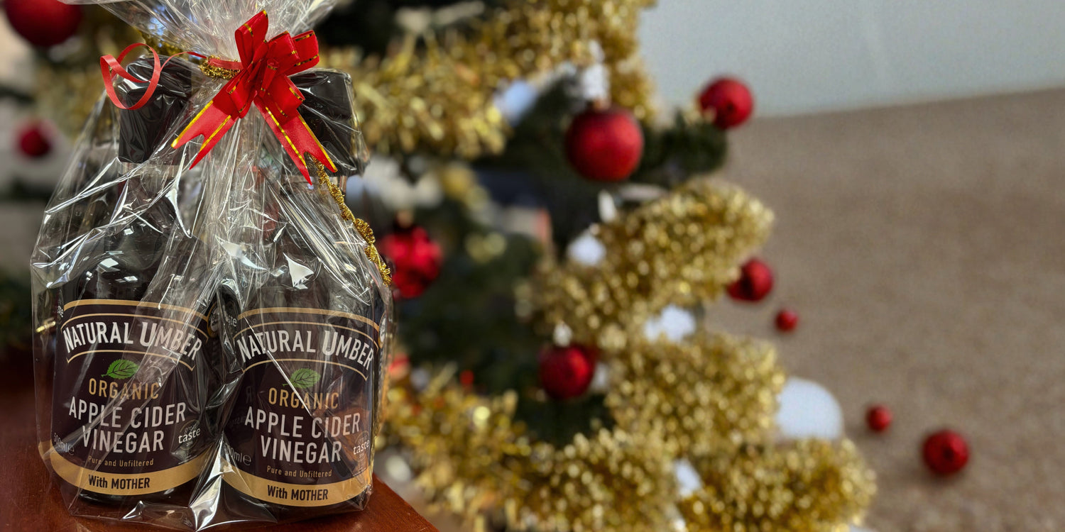 New Year resolutions are looming. Give the gift of Natural Umber Organic Apple Cider Vinegar to start 2026 with a wellness boost. Our customers have told us that one tablespoon per day has helped curb their cravings and aid weight loss. Prepare your loved one for the wellness rush by ordering this limited Christmas edition Apple Cider Vinegar gift set.